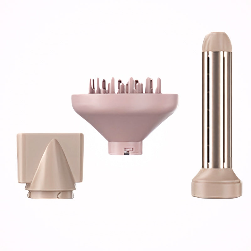 β 9 Interchangeable Attachments: Blow dryer, diffuser, curling brush, smoothing comb, straightening brush, and more.